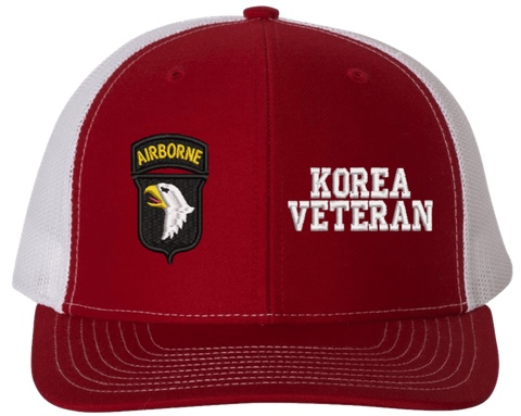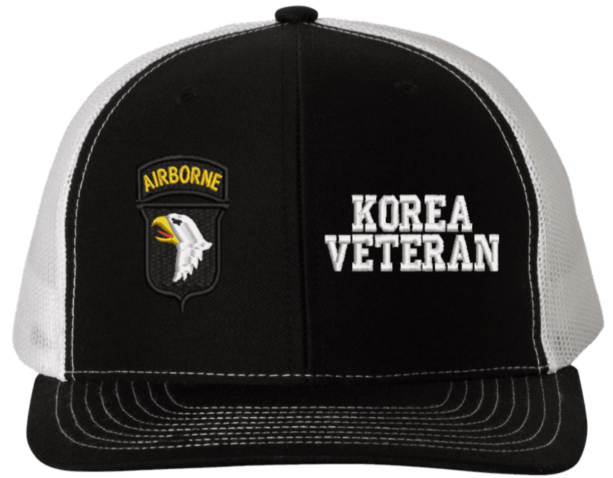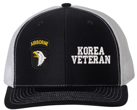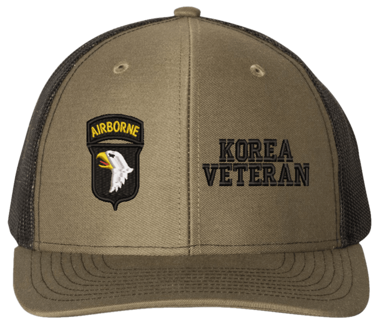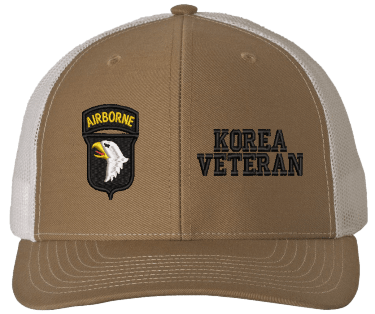 MilitaryBest is proud to offer this Mesh Back 101st Airborne Korea Veteran Split Cap. The 101st Airborne Division Insignia is embroidered onto a 6x panel mid/low profile mesh back cap and is crisp, clean, and sure to be loved by people of all ages! As with all MilitaryBest caps and apparel your satisfaction is guaranteed!Caps ordered with embroidered back text requires an additional 1 to 2 days of production time. All personalized caps will be embroidered in ALL CAPITAL LETTERS. Caps personalized with back text are not returnable unless there is a material defect in the cap.