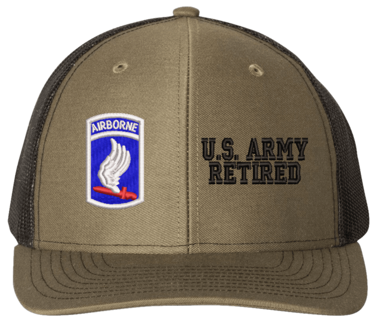 MilitaryBest is proud to offer this Mesh Back 173rd Airborne U.S. Army Retired Split Cap. The 173rd Airborne Brigade Insignia is embroidered onto a 6x panel mid/low profile mesh back cap and is crisp, clean, and sure to be loved by people of all ages! As with all MilitaryBest caps and apparel your satisfaction is guaranteed!Caps ordered with embroidered back text requires an additional 1 to 2 days of production time. All personalized caps will be embroidered in ALL CAPITAL LETTERS. Caps personalized with back text are not returnable unless there is a material defect in the cap.