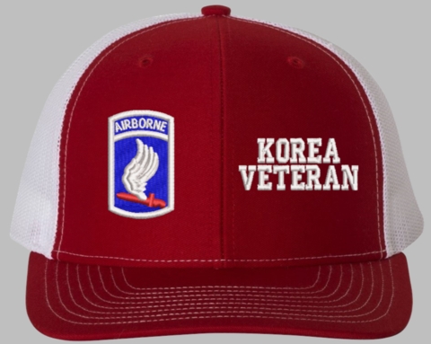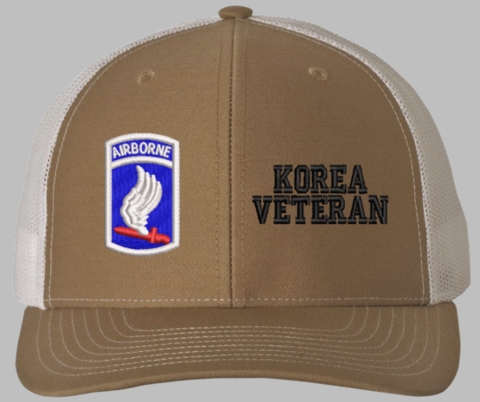 MilitaryBest is proud to offer this Mesh Back 173rd Airborne Korea Veteran Split Cap. The 173rd Airborne Brigade Insignia is embroidered onto a 6x panel mid/low profile mesh back cap and is crisp, clean, and sure to be loved by people of all ages! As with all MilitaryBest caps and apparel your satisfaction is guaranteed!Caps ordered with embroidered back text requires an additional 1 to 2 days of production time. All personalized caps will be embroidered in ALL CAPITAL LETTERS. Caps personalized with back text are not returnable unless there is a material defect in the cap.