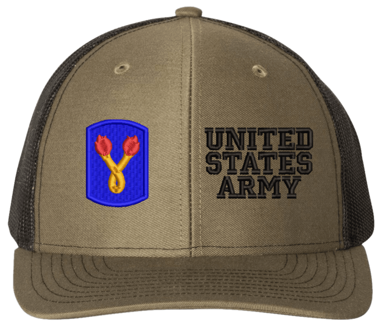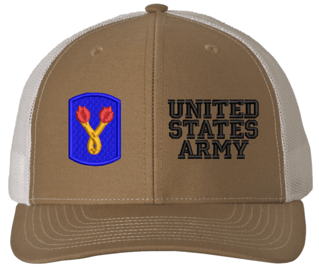 MilitaryBest is proud to offer this Mesh Back 196th Infantry United States Army Split Cap. The 196th Infantry Brigade Insignia is embroidered onto a 6x panel mid/low profile mesh back cap and is crisp, clean, and sure to be loved by people of all ages! As with all MilitaryBest caps and apparel your satisfaction is guaranteed!Caps ordered with embroidered back text requires an additional 1 to 2 days of production time. All personalized caps will be embroidered in ALL CAPITAL LETTERS. Caps personalized with back text are not returnable unless there is a material defect in the cap.