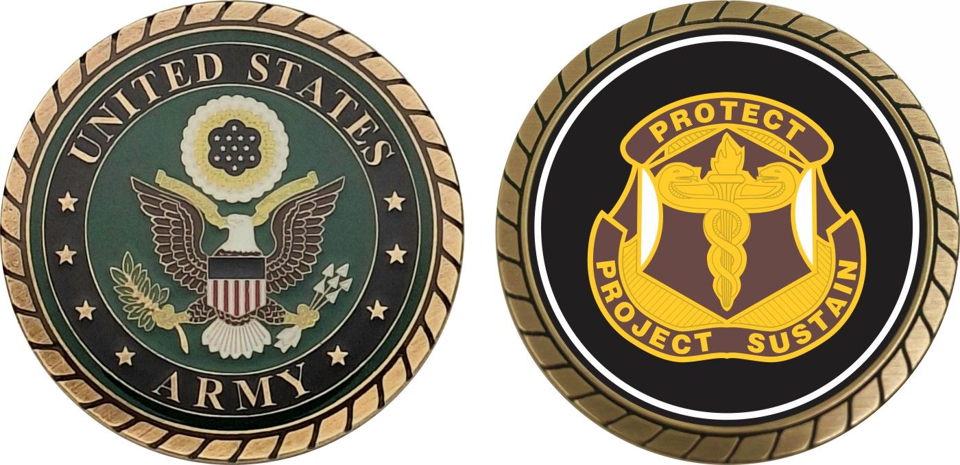 This 1 3/4” Medical Research and Materials Command Unit Crest Challenge Coin is proudly offered by Militarybest. This Officially Licensed Army coin has beautiful enamel finish on one side and an organized crisp clean design on the opposite side.