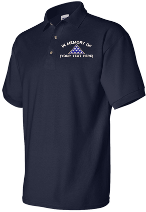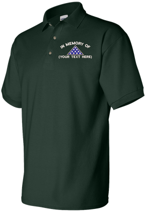 Note: Some of the Color Options pictured may not be available. Available Color Options are listed on the drop down menu above.MilitaryBest is proud to offer this quality In Memory Custom Polo. Each Polo is available in either 100% Ringspun cotton pique or a 50/50 cotton/polyester blend. These quality Military Polos are proudly embroidered at our facilities in Scottsboro, AL. Support the Army MWR program by purchasing only from Licensed Vendors.