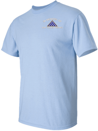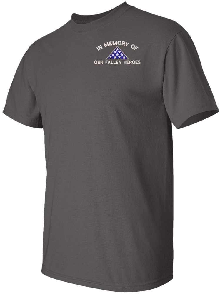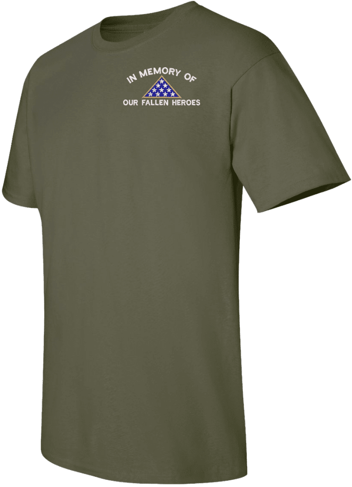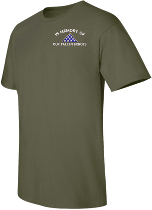 Note: Some of the Color Options pictured may not be available. Available Color Options are listed on the drop down menu above.MilitaryBest is proud to offer this In Memory of Our Fallen Heroes T-Shirt and give people the opportunity to show their respects to fallen heroes. This Gildan brand short sleeve t-shirt is made using a 6 oz pre-shrunk 100% cotton material.