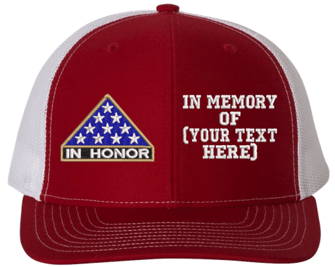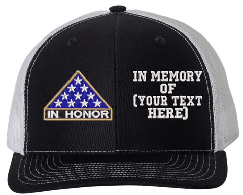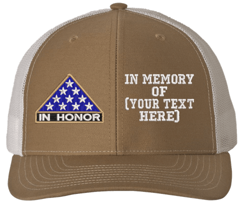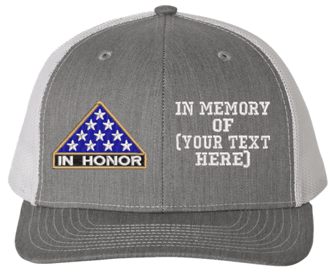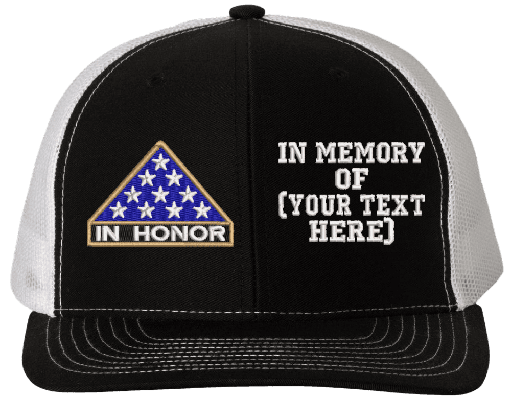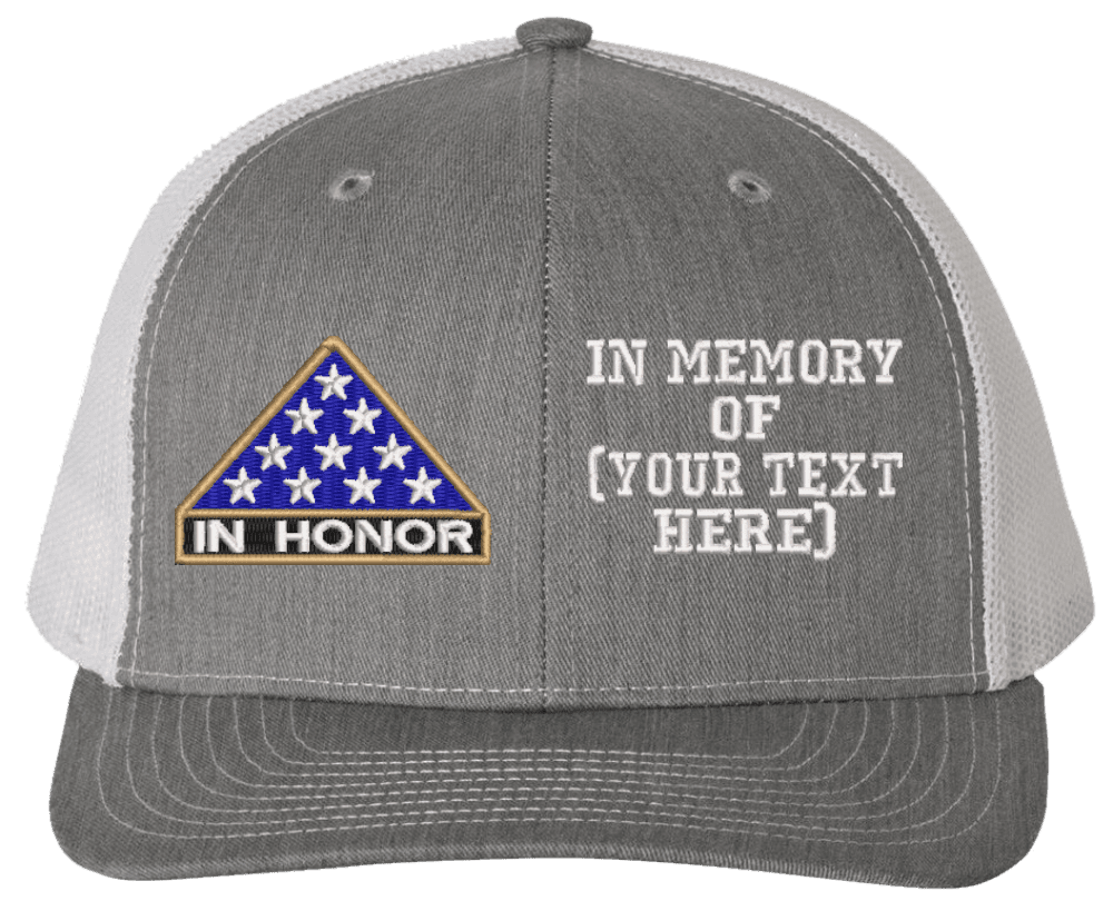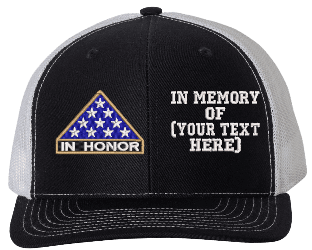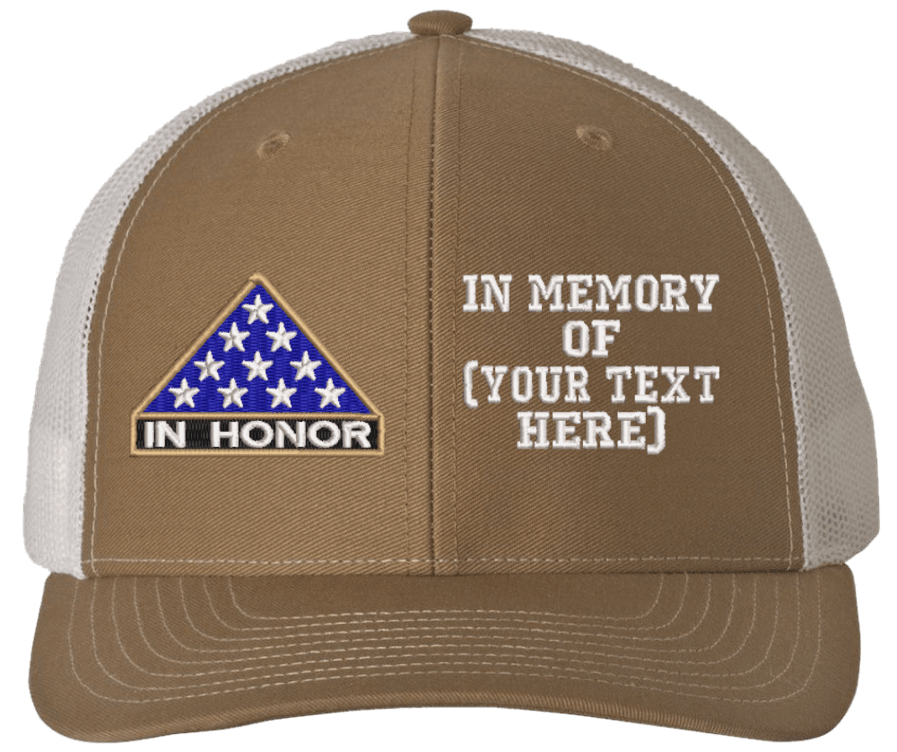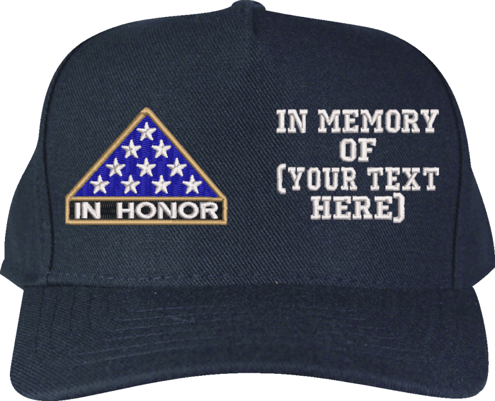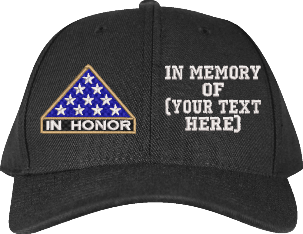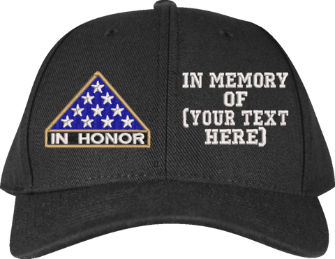 MilitaryBest is proud to offer this In Memory Split Custom Cap and give people the opportunity to show their respects to fallen heroes. All Text on custom orders will be embroidered in ALL CAPITAL LETTERS.