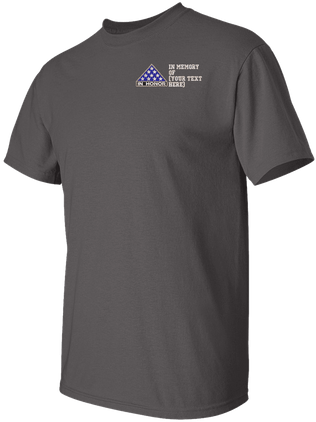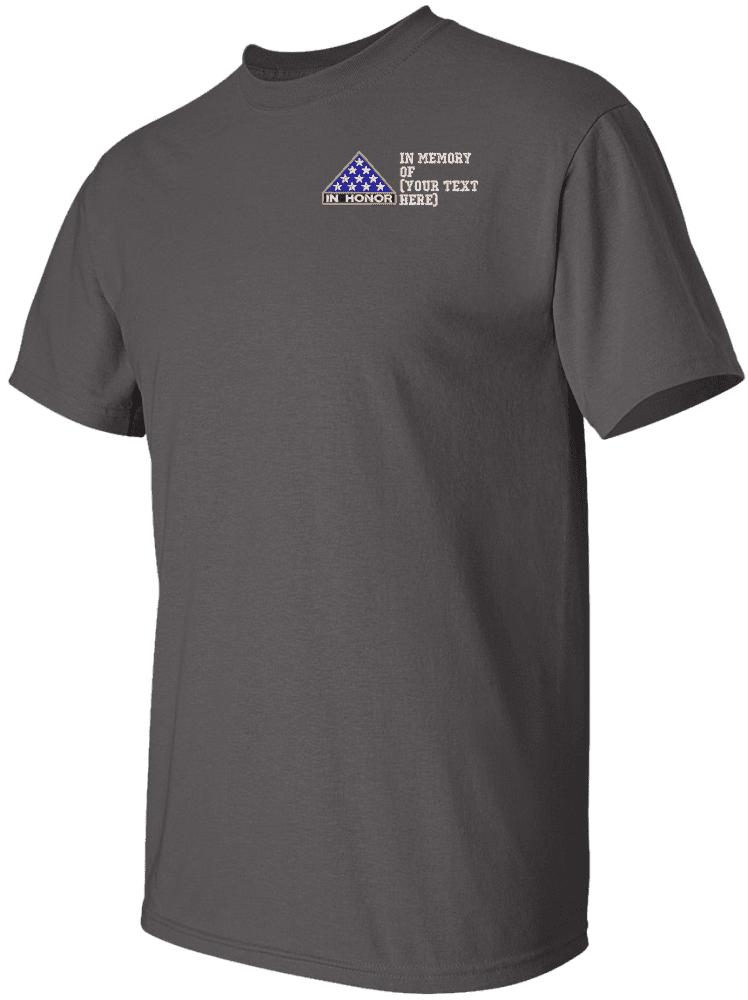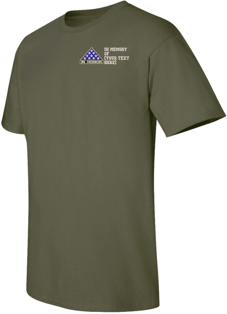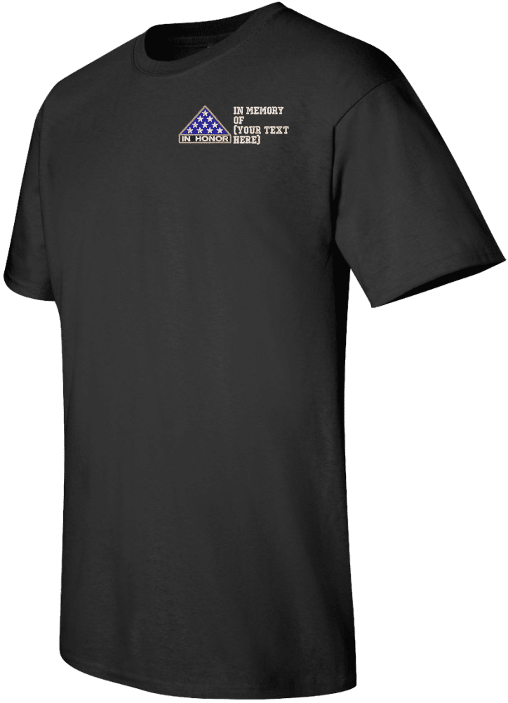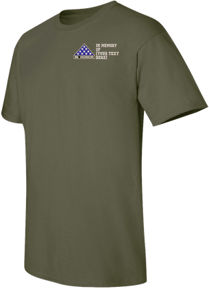 MilitaryBest is proud to offer this In Memory Split Custom T-Shirt and give people the opportunity to show their respects to fallen heroes. All Text on custom orders will be embroidered in ALL CAPITAL LETTERS.