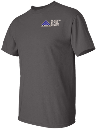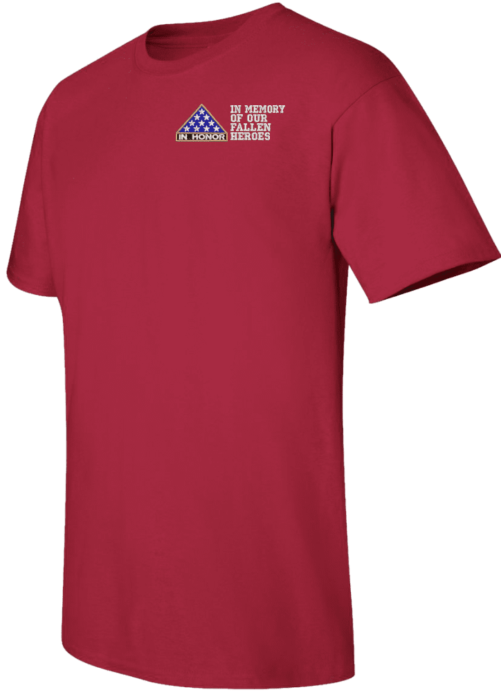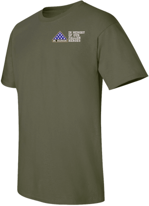 Note: Some of the Color Options pictured may not be available. Available Color Options are listed on the drop down menu above.MilitaryBest is proud to offer this In Memory of Our Fallen Heroes Split T-Shirt and give people the opportunity to show their respects to fallen heroes. This Gildan brand short sleeve t-shirt is made using a 6 oz pre-shrunk 100% cotton material.