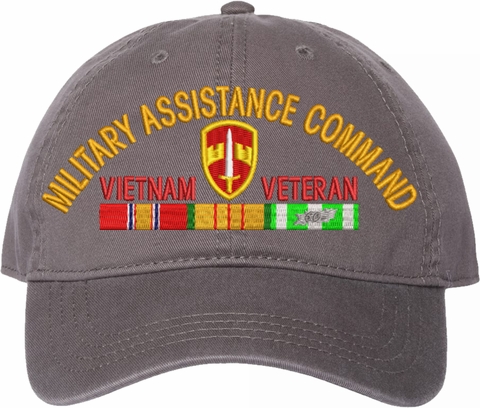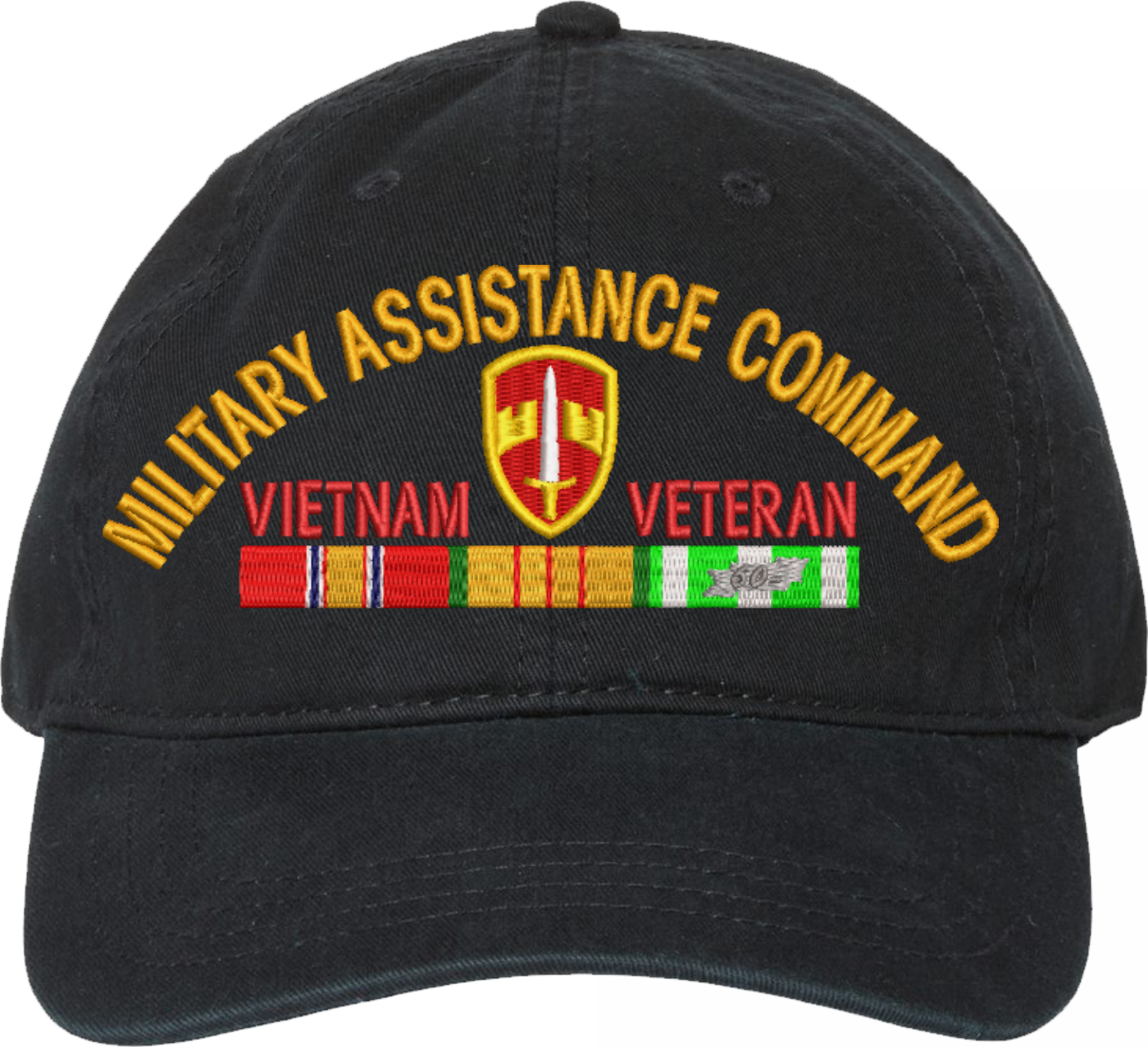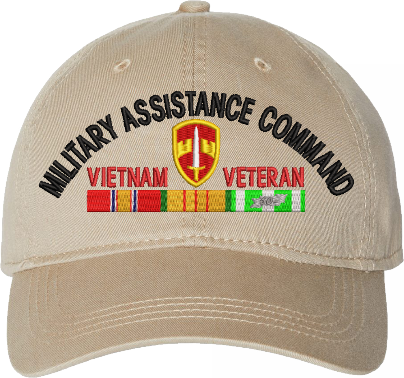 Show your Army pride with this Military Assistance Command Vietnam Veteran with Ribbons Unstructured Dad Cap from MilitaryBest. Crafted from 100% washed chino twill cotton, this six-panel, low-profile cap offers a relaxed and comfortable fit. Featuring high-quality embroidery done in our Scottsboro, Alabama facility, this cap is designed with a pre-curved visor and an adjustable tri-glide buckle closure for a perfect fit. Whether for everyday wear or as a meaningful gift, this cap is a great way to honor your own or a loved one's service.For caps ordered with custom embroidered personalized text please allow an additional 3 to 5 days production time. All custom back text will be embroidered in ALL CAPITAL LETTERS. Caps with back text or eggs are non-returnable unless there is a material defect in the cap.