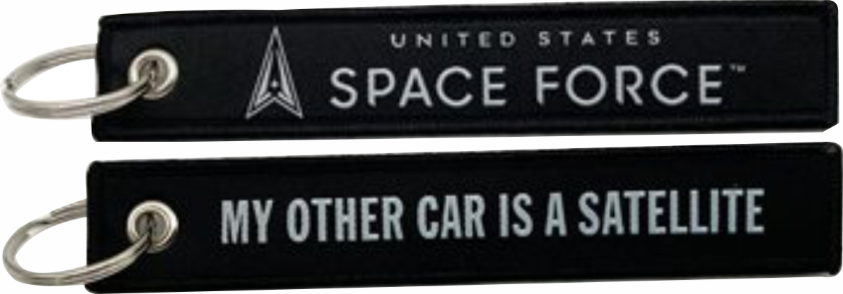 This USSF "My Other Car is a Satellite" Keychain is procured from the same company that supplies posts and exchanges around the world. Pictured are the front and back of the key chain. Its quality is assured, and your satisfaction guaranteed!A percentage of the sale of each MilitaryBest item is forwarded to the licensing departments of each respective branch of service in support of the MWR (Morale, Welfare, & Recreation) program. These payments are made by either ALL4U LLC or the wholesaler from where the item originated. Our team thanks you for your service and your support of these programs.