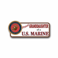 MY GRANDDAUGHTER IS IN THE MARINES  VINYL TRANSFER DECALThis Marine Corps Seal vinyl transfer decal measures 3.8" and is a MilitaryBest.com exclusive. Made in our facility in Scottsboro. Our transfers are made from the highest quality vinyl and UV resistant graphics. This transfer is for OUTSIDE APPLICATION. Each is made in the USA. For bulk pricing for custom and wholesale decals click here: Custom & Wholesale Decals!
