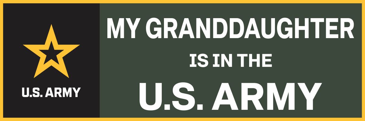 This My Granddaughter is in the Army vinyl transfer bumper sticker is an ArmyDecals.com exclusive. Made in our facility in Scottsboro. Our transfers are made from the highest quality vinyl and UV resistant graphics. This transfer is for OUTSIDE APPLICATION. Each is made in the USA. For bulk pricing for custom and wholesale decals click here: Custom & Wholesale Decals!*While many of our customers use our decals on a variety of surfaces. Their intended purpose is for windshield applications