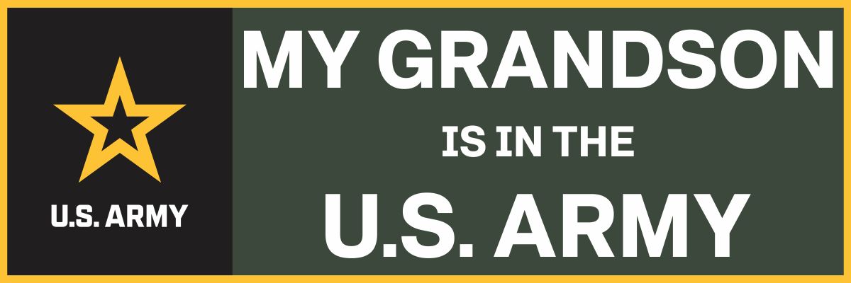 This My Grandson is in the Army vinyl transfer bumper sticker is an ArmyDecals.com exclusive. Made in our facility in Scottsboro. Our transfers are made from the highest quality vinyl and UV resistant graphics. This transfer is for OUTSIDE APPLICATION. Each is made in the USA. For bulk pricing for custom and wholesale decals click here: Custom & Wholesale Decals!*While many of our customers use our decals on a variety of surfaces. Their intended purpose is for windshield applications