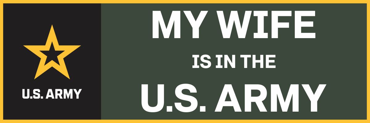 This My Wife is in the Army vinyl transfer bumper sticker is an ArmyDecals.com exclusive. Made in our facility in Scottsboro. Our transfers are made from the highest quality vinyl and UV resistant graphics. This transfer is for OUTSIDE APPLICATION. For bulk pricing for custom and wholesale decals click here: Custom & Wholesale Decals!*While many of our customers use our decals on a variety of surfaces. Their intended purpose is for windshield applications