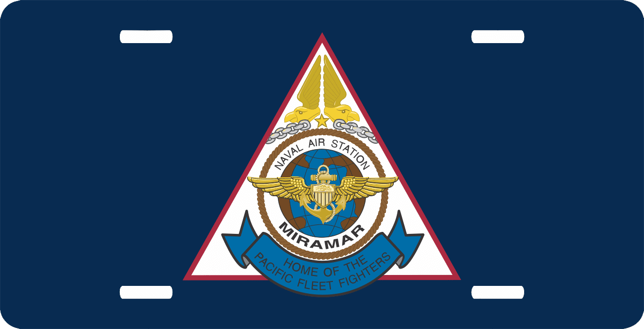 This Naval Air Station Miramar License Plate is made from heavy gauge aluminum and has a baked enamel finish to last for many years of use. Each plate measures 5 15/16" x 11 15/16". This license plate would make a wonderful addition to your collection or a great gift.