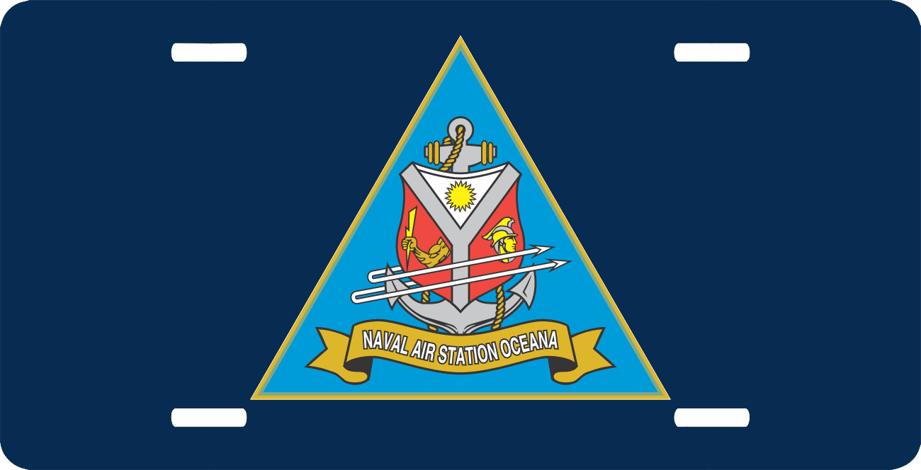 This Naval Air Station Oceana License Plate is made from heavy gauge aluminum and has a baked enamel finish to last for many years of use. Each plate measures 5 15/16" x 11 15/16". This license plate would make a wonderful addition to your collection or a great gift.