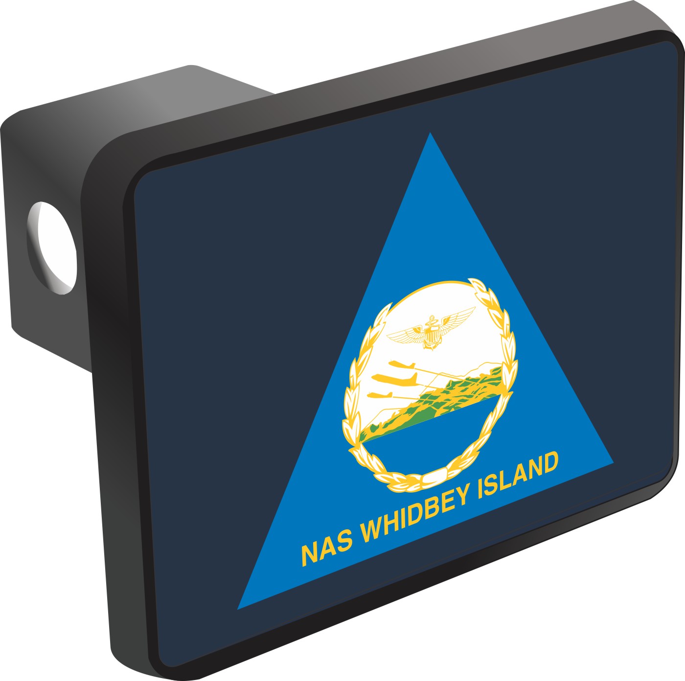 This Naval Air Station Whidbey Island Hitch Cover is proudly Made in the USA. Each Hitch Cover's face plate measures 4.7" x 3.4" and is applied on a black heavy duty injection molded plastic 2" hitch cover; link pin not included. The face plate of the hitch cover is sublimation printed to provide a beautiful glossy finish sure to catch the eye. This hitch cover would make a wonderful addition to your truck or other vehicle.A percentage of the sale of each MilitaryBest item is forwarded to the licensing departments of each respective branch of service in support of the MWR (Morale, Welfare, & Recreation) program. These payments are made by either ALL4U LLC or the wholesaler from where the item originated. Our team thanks you for your service and your support of these programs.