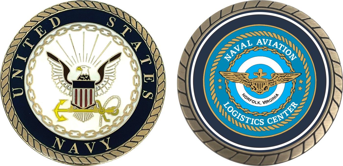 This 1 3/4” Naval Aviation Logistics Norfolk Center Challenge Coin is proudly offered by Militarybest. This Officially Licensed Navy coin has beautiful enamel finish on one side and an organized crisp clean design on the opposite side.
