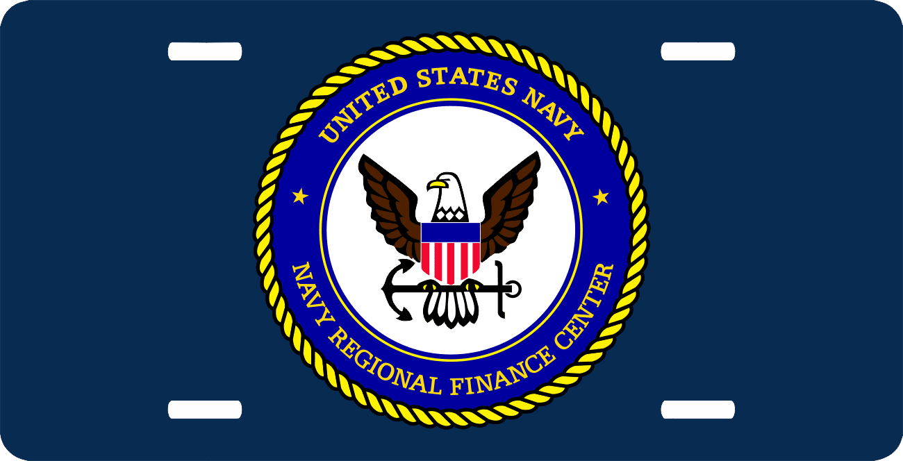 This Naval Regional Finance Center License Plate is made from heavy gauge aluminum and has a baked enamel finish to last for many years of use. Each plate measures 5 15/16" x 11 15/16". This license plate would make a wonderful addition to your collection or a great gift.