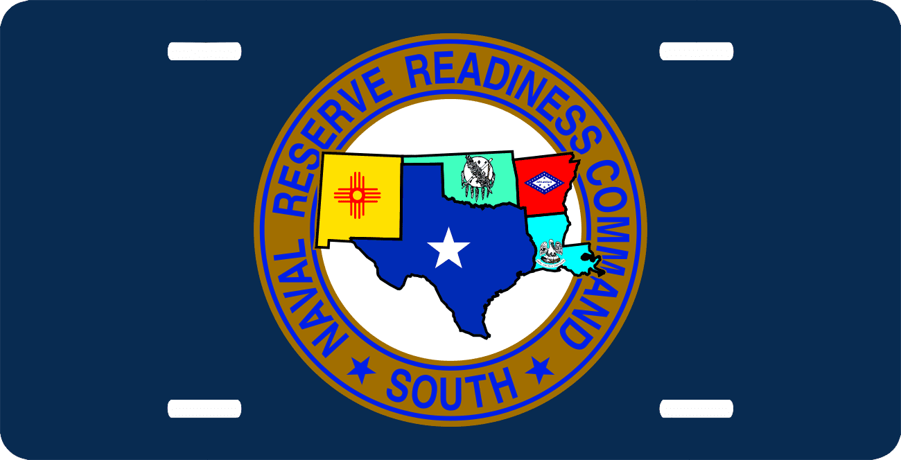 This Naval Reserve Readiness Command-South License Plate is made from heavy gauge aluminum and has a baked enamel finish to last for many years of use. Each plate measures 5 15/16" x 11 15/16". This license plate would make a wonderful addition to your collection or a great gift.
