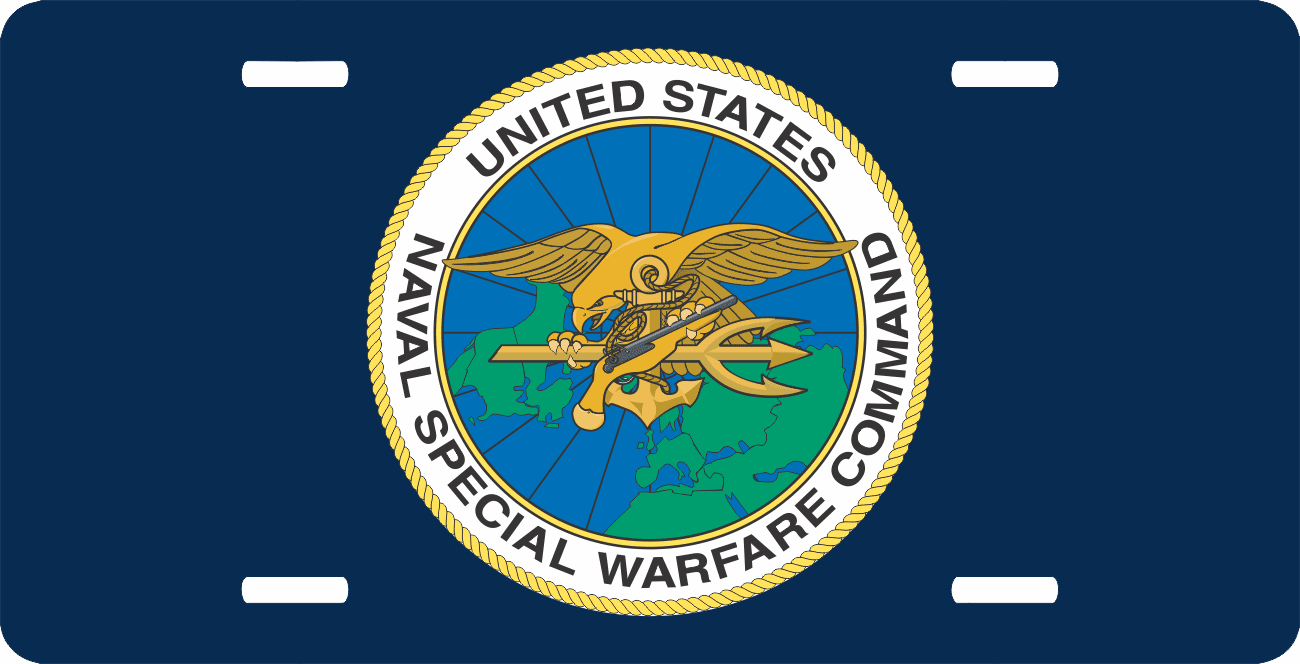 This Naval Special War Command License Plate is made from heavy gauge aluminum and has a baked enamel finish to last for many years of use. Each plate measures 5 15/16" x 11 15/16". This license plate would make a wonderful addition to your collection or a great gift.