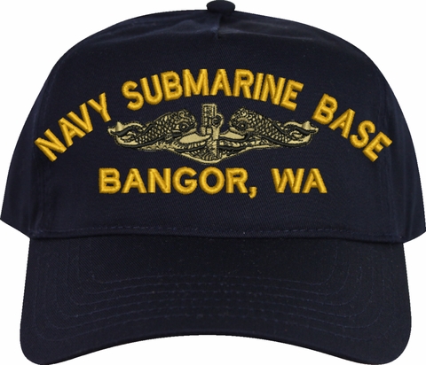 MilitaryBest is proud to offer this Naval Submarine Base Bangor w/ Gold Dolphins Embroidered Cap. The design of this Cap is crisp, clean, and sure to be loved by people of all ages! This Cap is crafted by our skilled embroidery technicians at our facilities in Scottsboro, AL. As with all MilitaryBest items, your satisfaction is guaranteed!