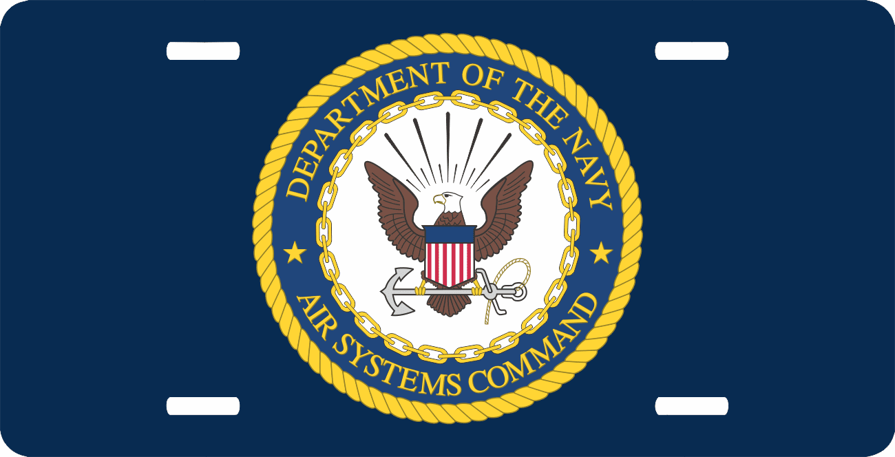 This Navy Air Systems Command License Plate is made from heavy gauge aluminum and has a baked enamel finish to last for many years of use. Each plate measures 5 15/16" x 11 15/16". This license plate would make a wonderful addition to your collection or a great gift.