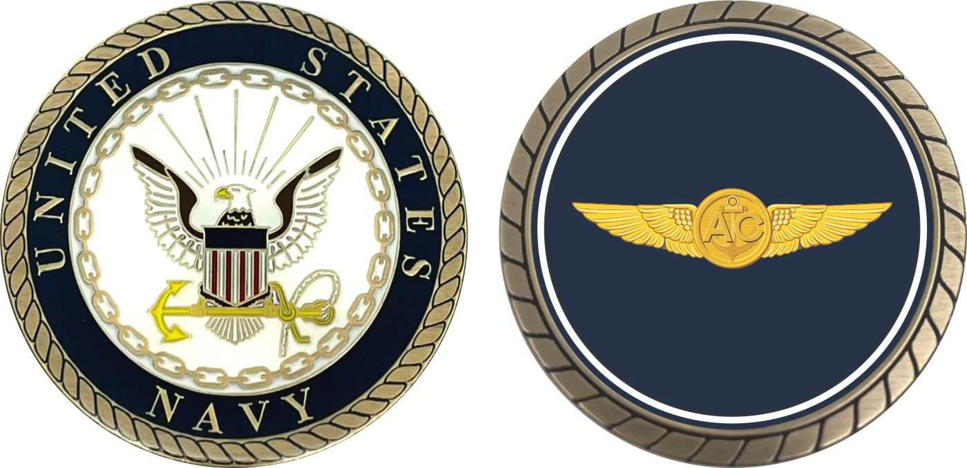 This 1 3/4 Navy Aircrew Wings Challenge Coin is proudly offered by Militarybest. This Officially Licensed Navy coin has beautiful enamel finish on one side and an organized crisp clean design on the opposite side.