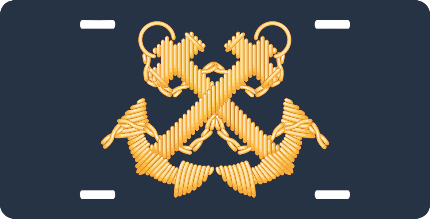 This Navy Boatswain Officer License Plate is made from heavy gauge aluminum and has a baked enamel finish to last for many years of use. Each plate measures 5 15/16" x 11 15/16". This license plate would make a wonderful addition to your collection or a great gift.