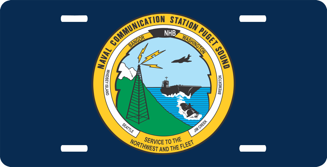 This Navy Communication Station Puget Sound License Plate is made from heavy gauge aluminum and has a baked enamel finish to last for many years of use. Each plate measures 5 15/16" x 11 15/16". This license plate would make a wonderful addition to your collection or a great gift.