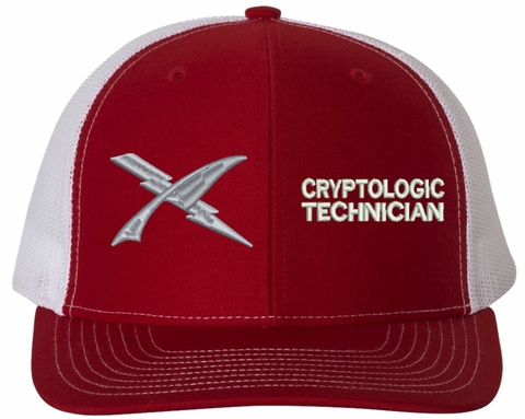 MilitaryBest is proud to offer this Navy Cryptologic Technician (CT) Rating USA Mesh-Back Cap. The design of this Cap is crisp, clean, and sure to be loved by people of all ages! This Mesh Back Cap Design is crafted by our skilled embroidery technicians at our facilities in Scottsboro, Alabama. As with all MilitaryBest items, your satisfaction is guaranteed!Caps ordered with embroidered back text requires an additional 1 to 2 days of production time. All personalized caps will be embroidered in ALL CAPITAL LETTERS. Caps personalized with back text are not returnable unless there is a material defect in the cap.