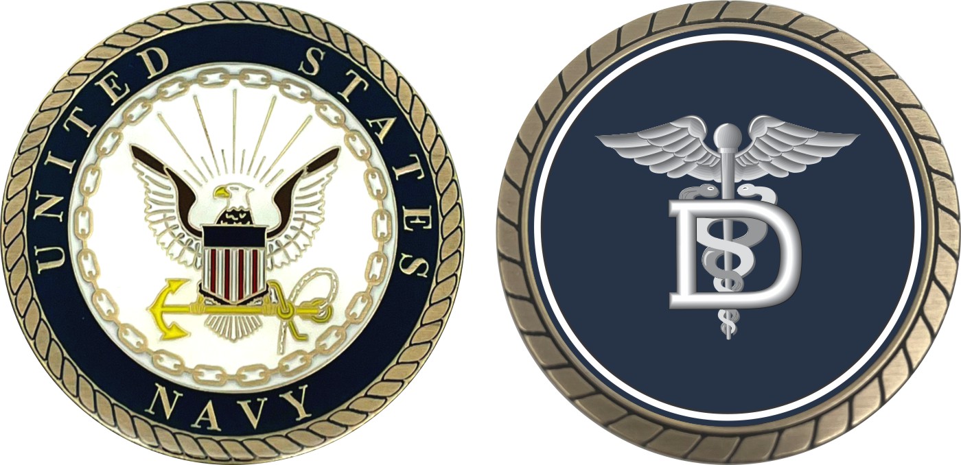 This 1 3/4” Navy Dental Technician Challenge Coin is proudly offered by Militarybest. This Officially Licensed Navy coin has beautiful enamel finish on one side and an organized crisp clean design on the opposite side.