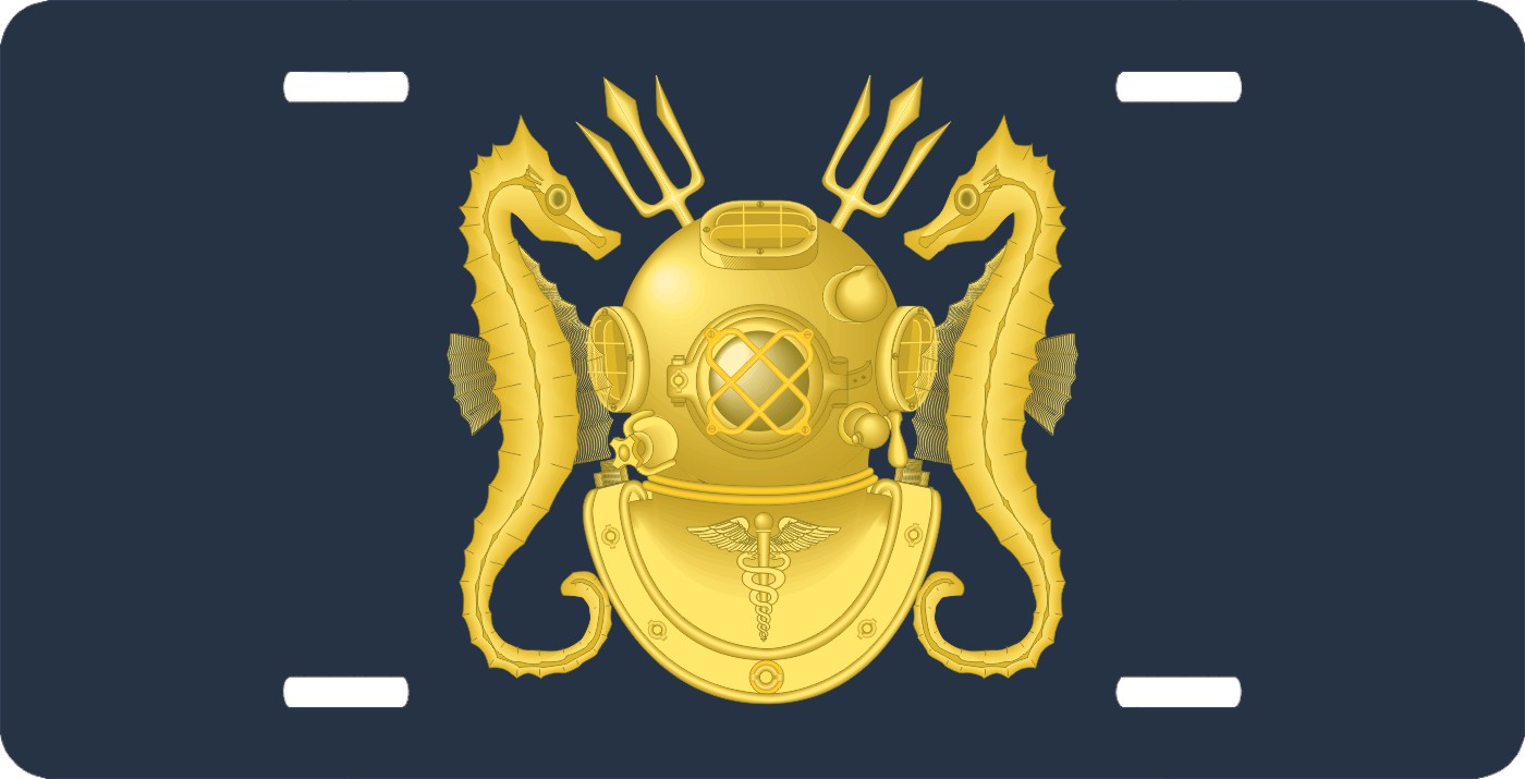 This Navy Diving Medical License Plate is made from heavy gauge aluminum and has a baked enamel finish to last for many years of use. Each plate measures 5 15/16" x 11 15/16". This license plate would make a wonderful addition to your collection or a great gift.