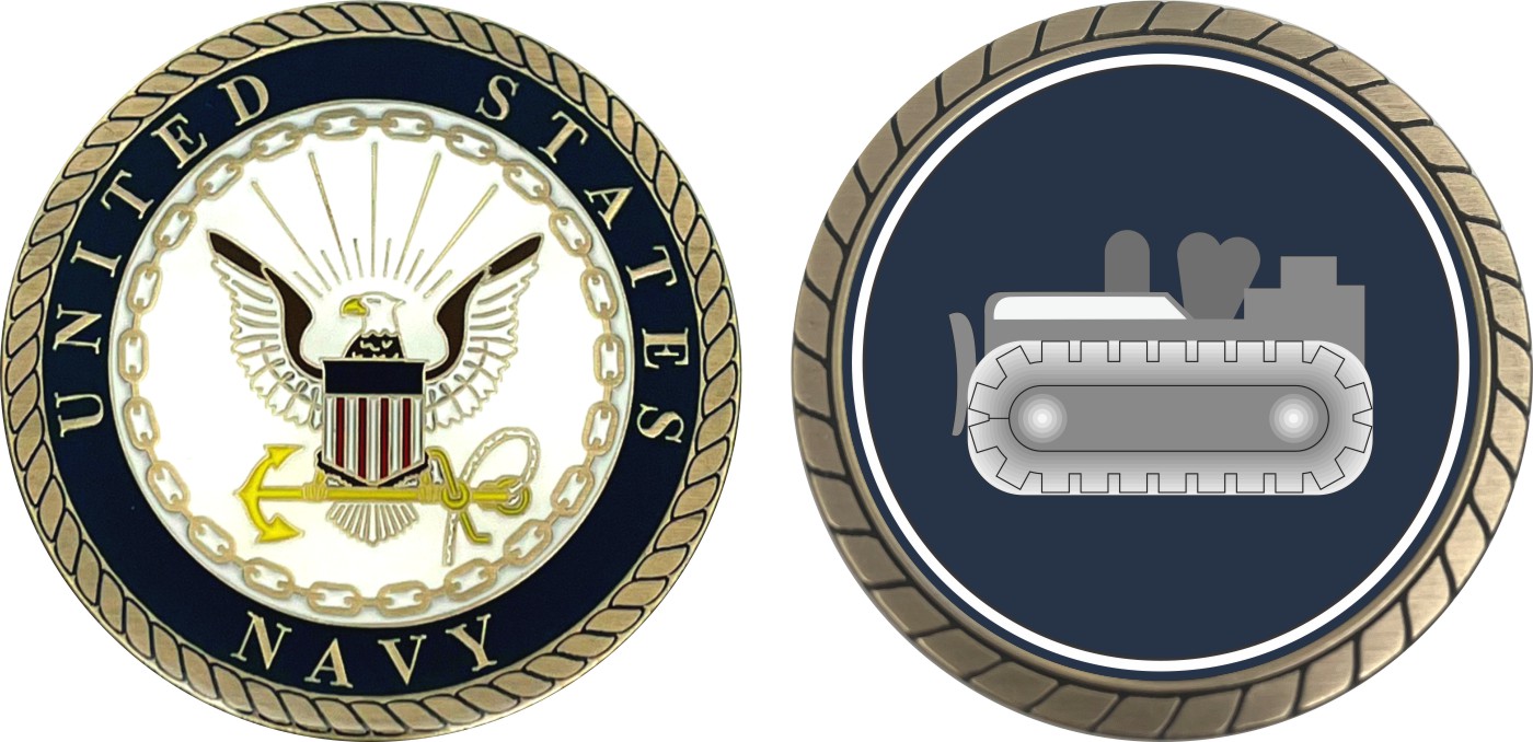 This 1 3/4” Navy Equipment Operator Challenge Coin is proudly offered by Militarybest. This Officially Licensed Navy coin has beautiful enamel finish on one side and an organized crisp clean design on the opposite side.