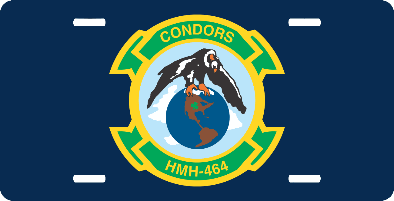 This Navy HMH-464 Squadron License Plate is made from heavy gauge aluminum and has a baked enamel finish to last for many years of use. Each plate measures 5 15/16" x 11 15/16". This license plate would make a wonderful addition to your collection or a great gift.