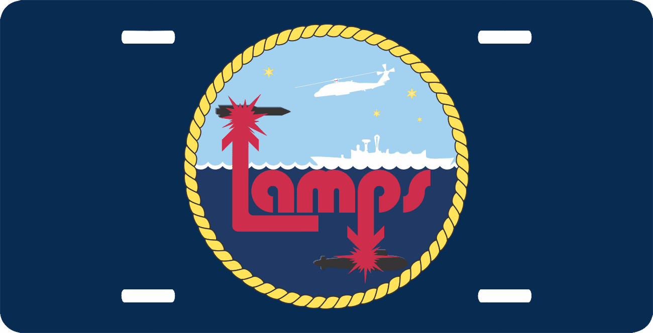 This Navy Lamps License Plate is made from heavy gauge aluminum and has a baked enamel finish to last for many years of use. Each plate measures 5 15/16" x 11 15/16". This license plate would make a wonderful addition to your collection or a great gift.