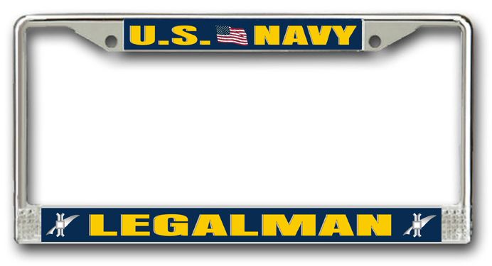 Navy Legalman LN Chrome License Plate FrameThis Navy Legalman LN Chrome License Plate Frame is made from the highest quality finished metal alloy. Each one is designed to provide years of use. This license plate frame is designed and made in our facility in Scottsboro, Alabama.