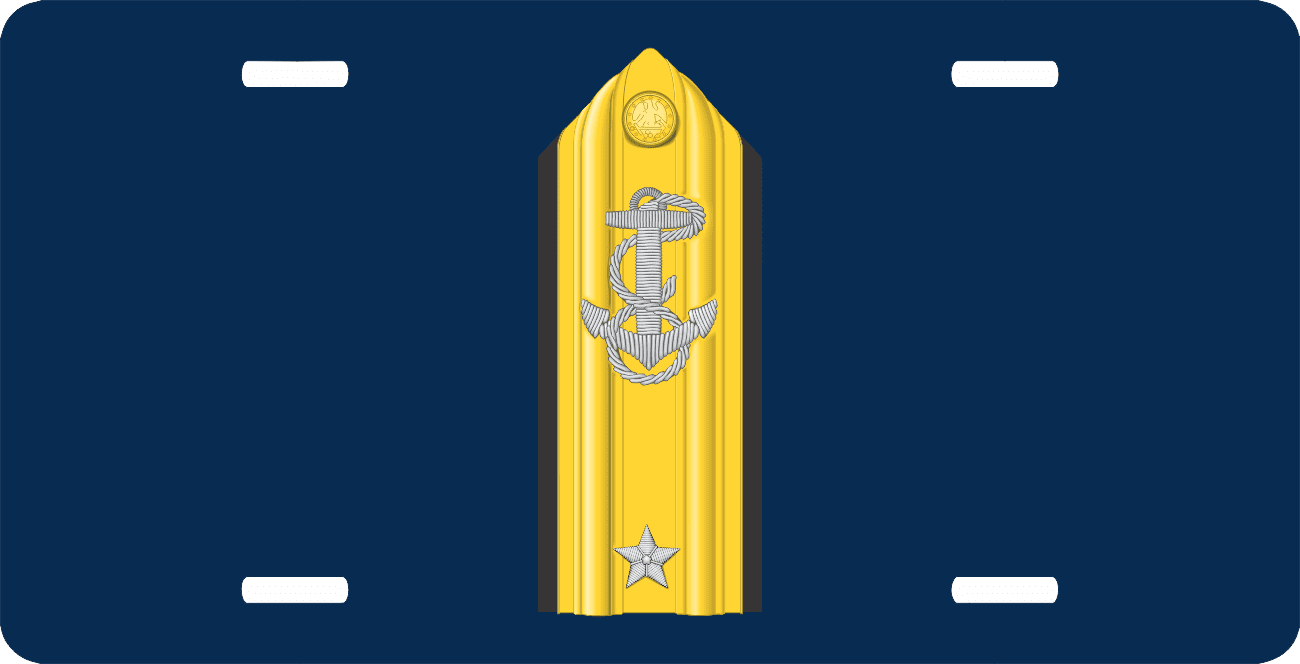 This Navy Lower Rear Admiral License Plate is made from heavy gauge aluminum and has a baked enamel finish to last for many years of use. Each plate measures 5 15/16" x 11 15/16". This license plate would make a wonderful addition to your collection or a great gift.