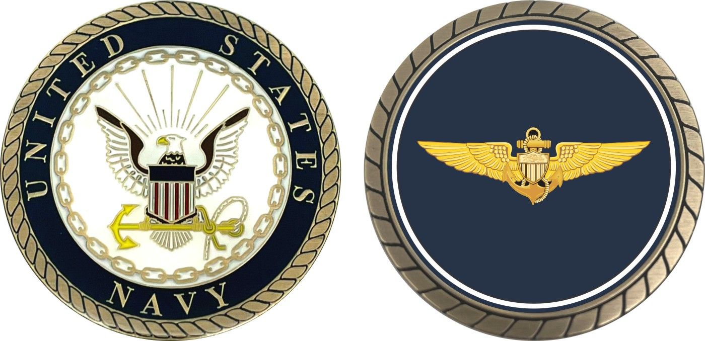 This 1 3/4” Navy Marine Corps Aviator Wings Challenge Coin is proudly offered by Militarybest. This Officially Licensed Navy coin has beautiful enamel finish on one side and an organized crisp clean design on the opposite side.