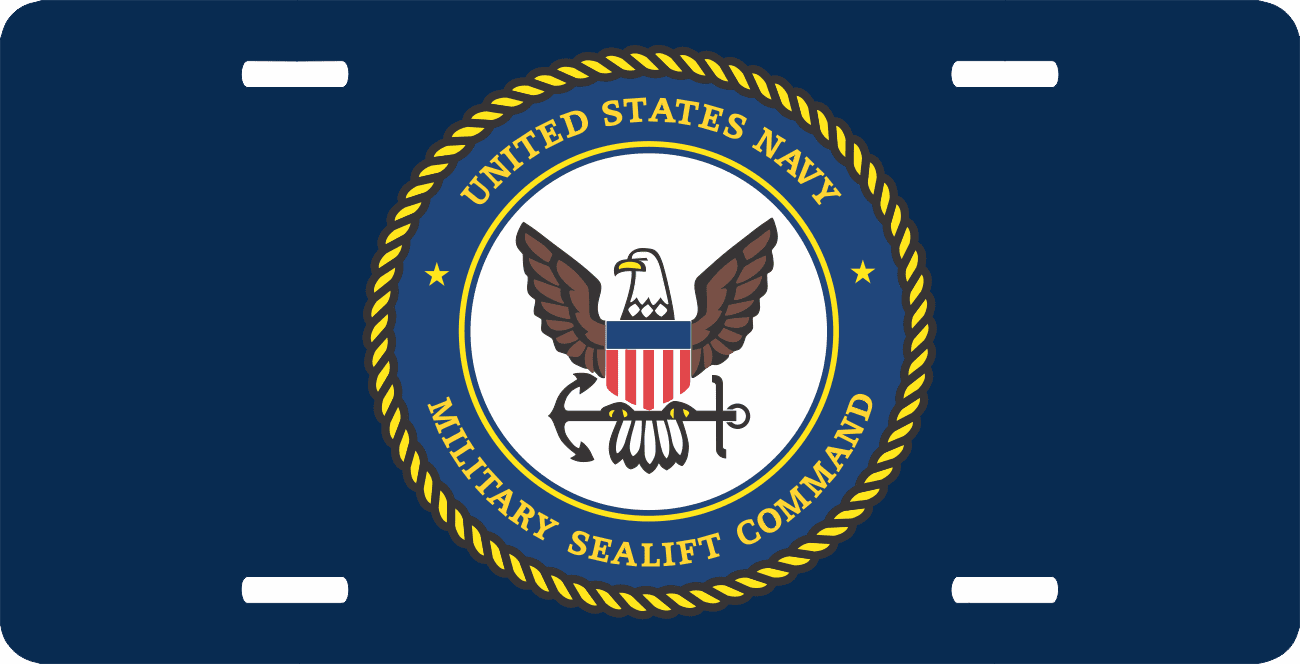 This Navy Military Sealift Command License Plate is made from heavy gauge aluminum and has a baked enamel finish to last for many years of use. Each plate measures 5 15/16" x 11 15/16". This license plate would make a wonderful addition to your collection or a great gift.