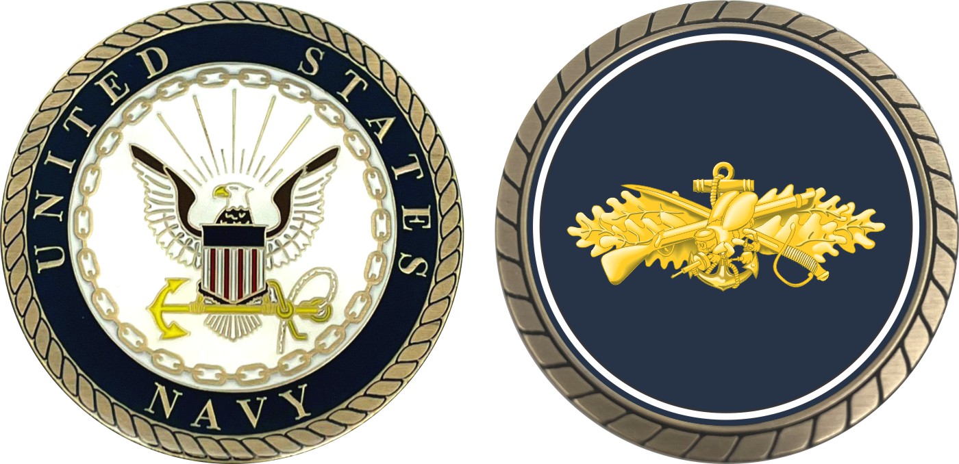 This 1 3/4” Navy New Sea Bee Challenge Coin is proudly offered by Militarybest. This Officially Licensed Navy coin has beautiful enamel finish on one side and an organized crisp clean design on the opposite side.