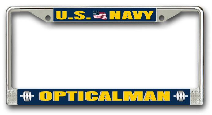 Navy Opticalman OM Chrome License Plate FrameNavy Opticalman OM Chrome License Plate FrameNavy Opticalman OM Chrome License Plate Frame