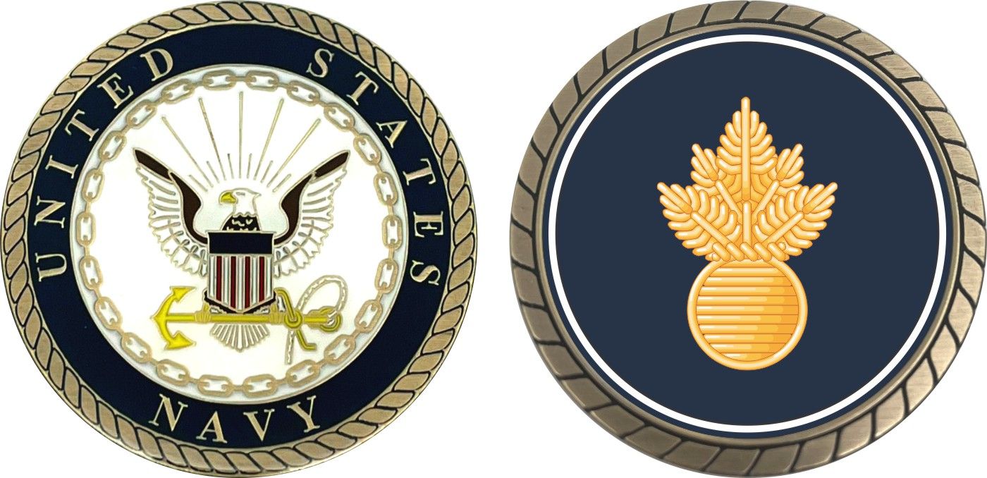This 1 3/4 Navy Ordnance Technician Challenge Coin is proudly offered by Militarybest. This Officially Licensed Navy coin has beautiful enamel finish on one side and an organized crisp clean design on the opposite side.