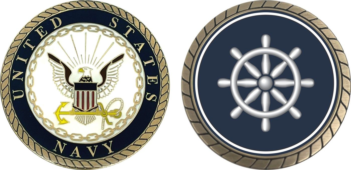 This 1 3/4” Navy Quartermaster Challenge Coin is proudly offered by Militarybest. This Officially Licensed Navy coin has beautiful enamel finish on one side and an organized crisp clean design on the opposite side.