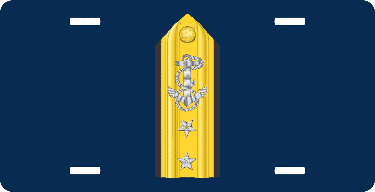 This Navy Rear Admiral License Plate is made from heavy gauge aluminum and has a baked enamel finish to last for many years of use. Each plate measures 5 15/16" x 11 15/16". This license plate would make a wonderful addition to your collection or a great gift.