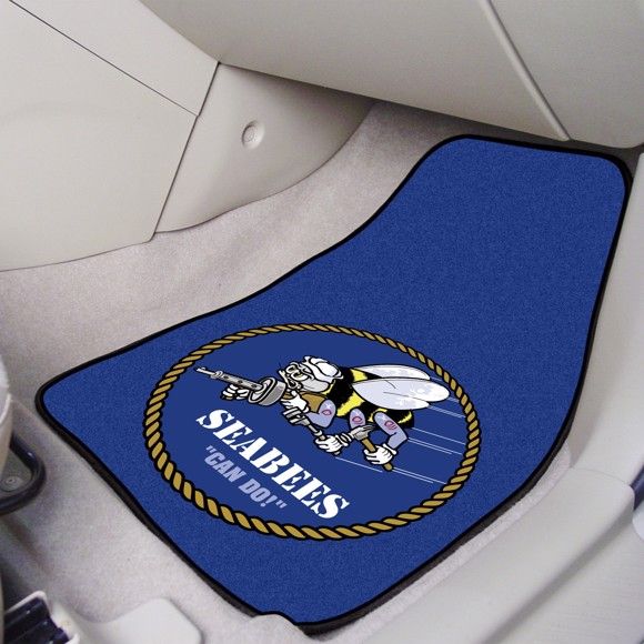 These U.S. Navy Seabees Carpeted Car Mats are made with a 100% nylon face and a non-skid vinyl backing. They are designed as a universal fit across all cars, trucks, SUVs, and RVs. These car mats would make a wonderful addition to your collection or a great gift. Quality is guaranteed.Fan Mats products are made to order and returns are not accepted unless there is a material defect in the product. These items are made to order and are in production 7-10 days.