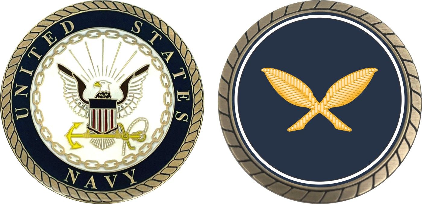 This 1 3/4 Navy Ships Clerk Challenge Coin is proudly offered by Militarybest. This Officially Licensed Navy coin has beautiful enamel finish on one side and an organized crisp clean design on the opposite side.