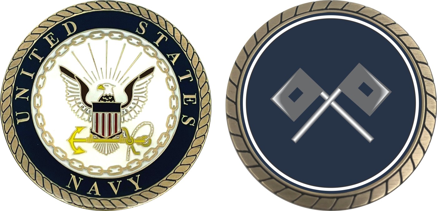This 1 3/4” Navy Signalman Challenge Coin is proudly offered by Militarybest. This Officially Licensed Navy coin has beautiful enamel finish on one side and an organized crisp clean design on the opposite side.
