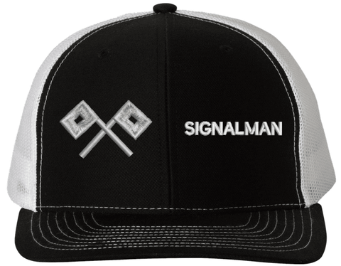 MilitaryBest is proud to offer this Navy Signalman (SM) Rating USA Mesh-Back Cap. The design of this Cap is crisp, clean, and sure to be loved by people of all ages! This Mesh Back Cap Design is crafted by our skilled embroidery technicians at our facilities in Scottsboro, Alabama. As with all MilitaryBest items, your satisfaction is guaranteed!Caps ordered with embroidered back text requires an additional 1 to 2 days of production time. All personalized caps will be embroidered in ALL CAPITAL LETTERS. Caps personalized with back text are not returnable unless there is a material defect in the cap.