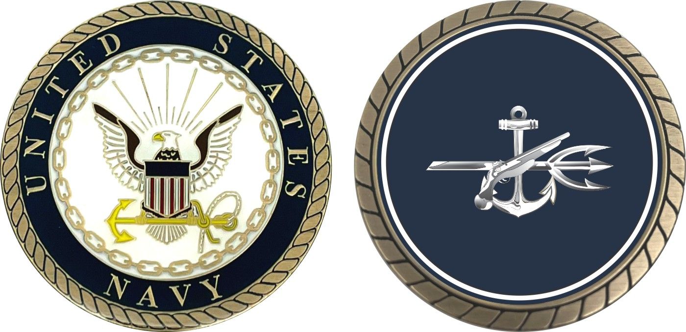 This 1 3/4” Navy Special Warfare Operator Challenge Coin is proudly offered by Militarybest. This Officially Licensed Navy coin has beautiful enamel finish on one side and an organized crisp clean design on the opposite side.