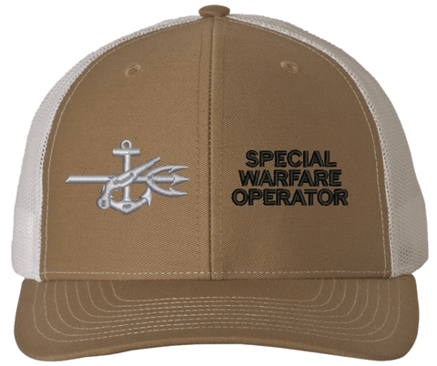 MilitaryBest is proud to offer this Navy Special Warfare Operator (SO) Rating USA Mesh-Back Cap. The design of this Cap is crisp, clean, and sure to be loved by people of all ages! This Mesh Back Cap Design is crafted by our skilled embroidery technicians at our facilities in Scottsboro, Alabama. As with all MilitaryBest items, your satisfaction is guaranteed!Caps ordered with embroidered back text requires an additional 1 to 2 days of production time. All personalized caps will be embroidered in ALL CAPITAL LETTERS. Caps personalized with back text are not returnable unless there is a material defect in the cap.