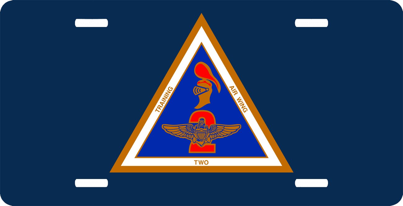 This Navy Training Air Wing Two License Plate is made from heavy gauge aluminum and has a baked enamel finish to last for many years of use. Each plate measures 5 15/16" x 11 15/16". This license plate would make a wonderful addition to your collection or a great gift.